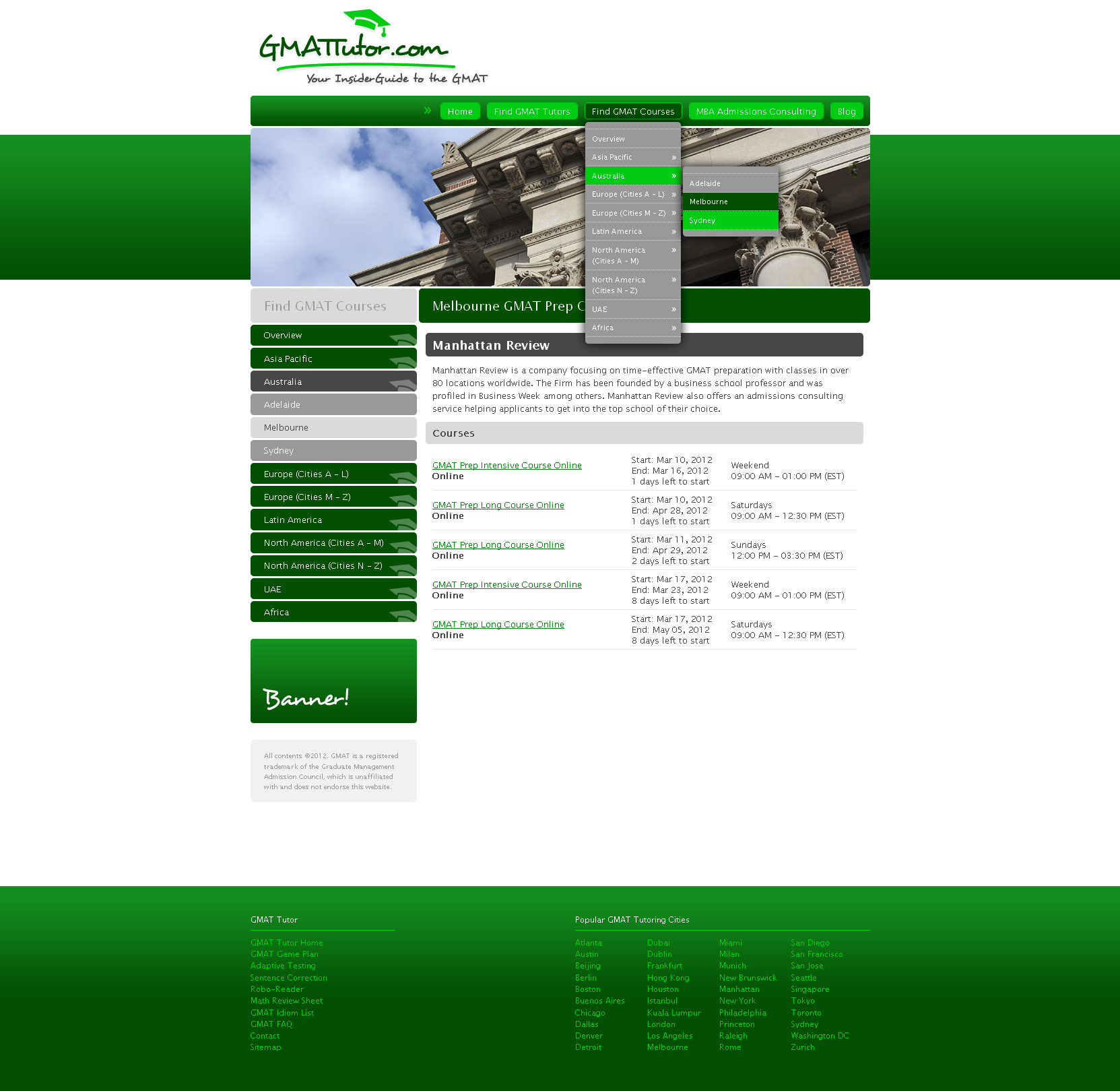 Technische Umsetzung der Webseite www.gmattutor.com und deren Länder-Ablegerhttp://www.gre-tutor.com mit TYPO3. Die Frontend-Entwicklung erfolgte durch www.point-webart.de.